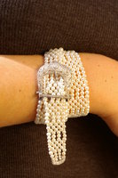 Filigree Diamond buckle, with double Pearl strap - 3cm